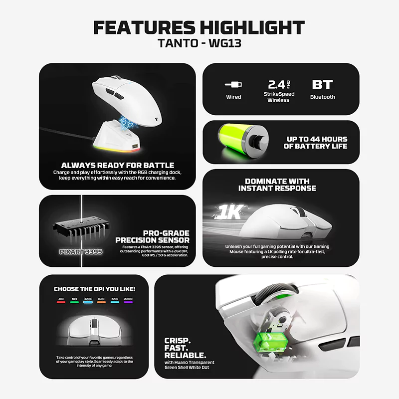 Tag: FANTECH WG13 TANTO TRI-MODE Wireless Gaming White