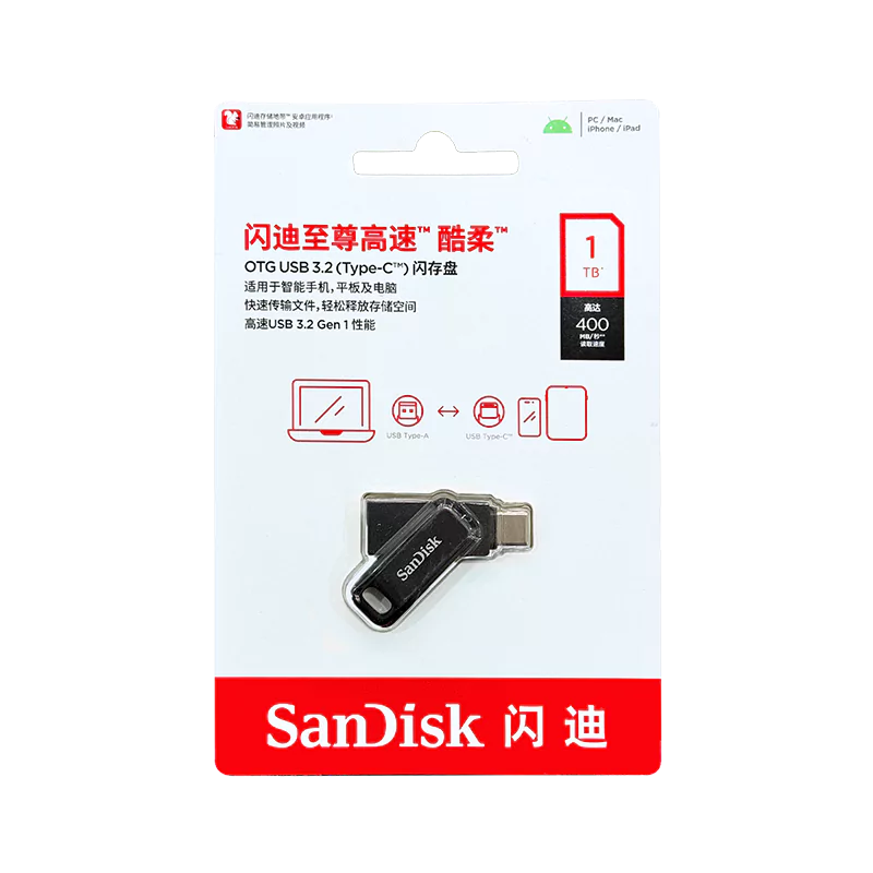 SanDisk OTG USB 3.2 Type-C Flash 256GB Black